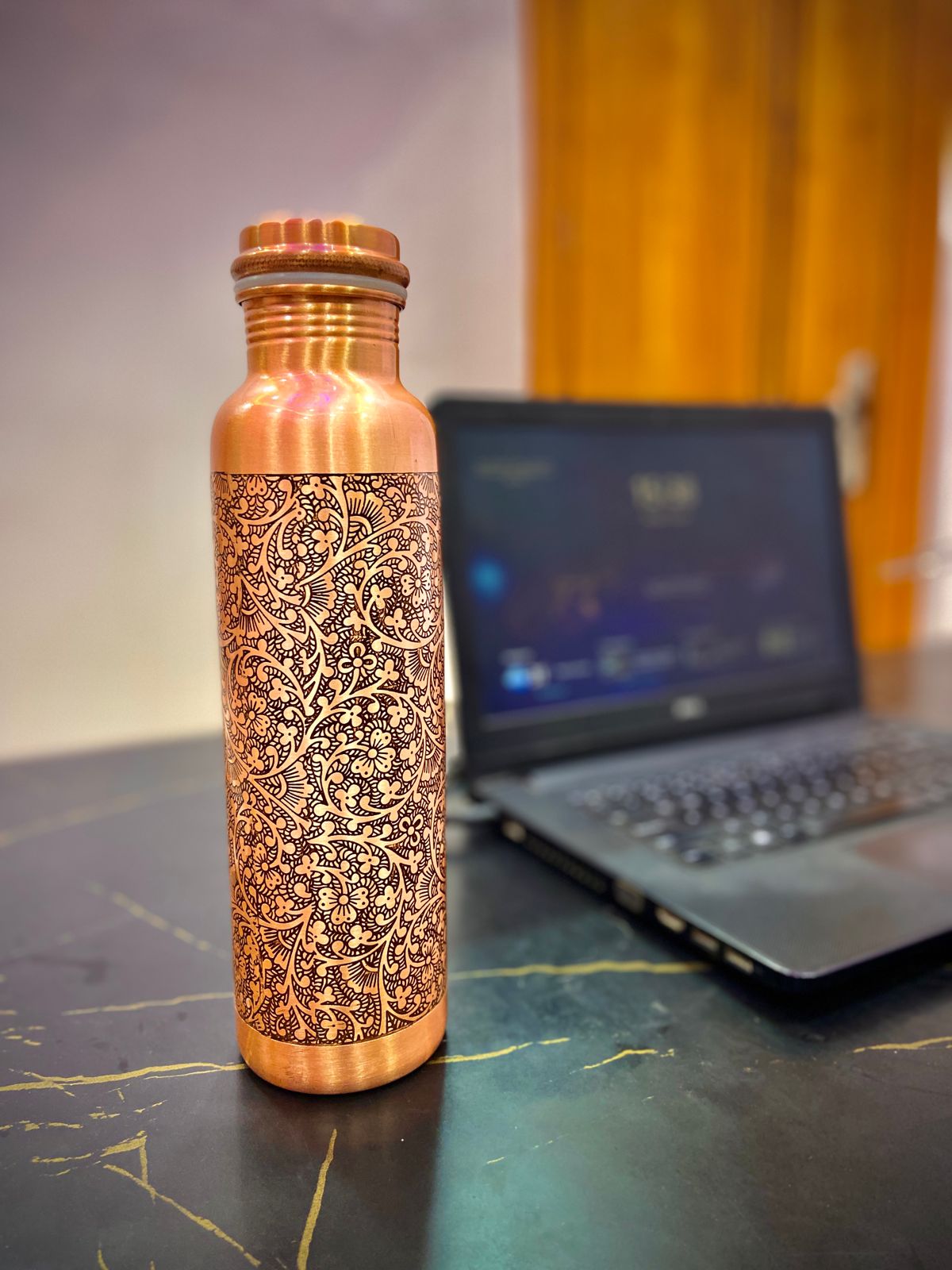 Shivara Etched Pure Copper Water Bottle – 1 Liter